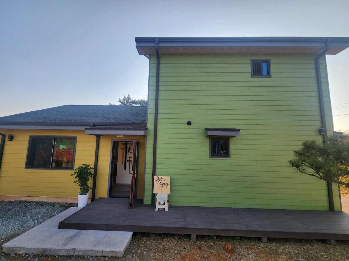 To jest dom nauczyciela, który zaczął się od chęci uzyskania wielkiej „władzy” dzięki jednemu „odpoczynkowi”. Nasza przestrzeń składa się z podwórka, głównego budynku i przybudówki, a materiały ścienne w głównej sypialni i kuchni są wykonane z cyprysu, więc jesteśmy uprawiani z chęcią uzdrowienia nawet po oddychaniu. W każdym głównym budynku i aneksie znajduje się niedawno przebudowana łazienka, a my przygotowaliśmy przestrzeń w wielofunkcyjnym pomieszczeniu w aneksie, aby stworzyć ciepłą przestrzeń, w której goście mogą wypić filiżankę herbaty i porozmawiać. Mamy nadzieję, że odpoczniesz od codziennego życia i poczujesz się zrelaksowany w tym miejscu, domu Lee. ❤️Baw się dobrze w domu tego nauczyciela i jedź!❤️ 1. Śledzenie rowerów, korzystanie z mini ogrodu 2. Skorzystaj z pobliskich atrakcji turystycznych (Juknokwon, Gwanbangjerim), restauracji (Samgeori Farmhouse, Ttukbangguksu), kawiarni (namhwa) 3. Bezpłatny wynajem sprzętu do pokrywek garnków podczas tworzenia atmosfery kempingowej) (Proszę przygotować mięso i węgiel drzewny. 1,5 kg węgla drzewnego na 3 osoby) 4. Noś spodnie i ciesz się choncation 5. Wspomnienia o szczeniaku (woda z rzeki) (mieszka na podwórku! na smyczy)