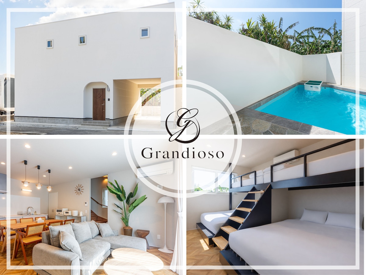 R プール6 BR 5toilets next to beach 砂浜歩き1分bbq無料恩納駅に近く