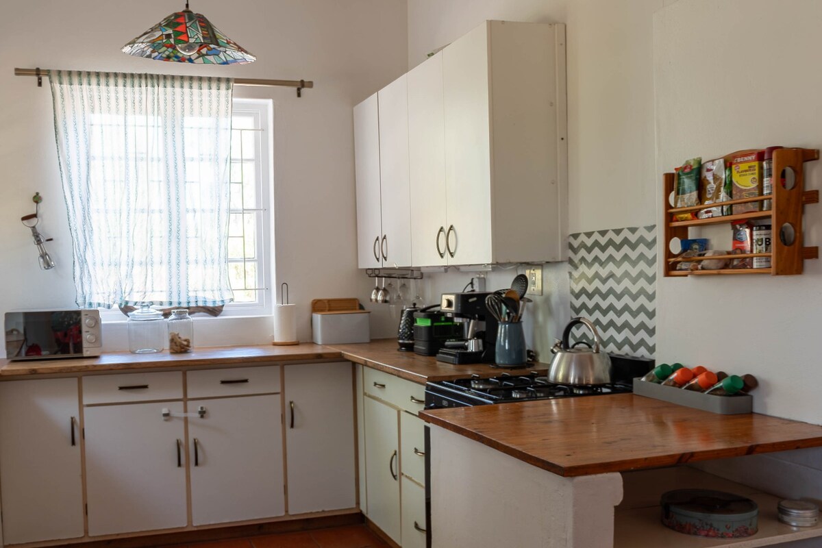 I have decided to rent out my personal farm house\ guest house to happy road trippers seeking solitude and a peaceful surrounding. The house is within a valley surrounded by 48 hectares of open land,beautiful mountain (cederberg) backdrops and a river with three natural swimming areas within walking distance of the guest house and the place include a 25m lap pool right in front of the veranda! Oh and plenty of clean breathable air :). There is one full sized bed so its best suited for couples.