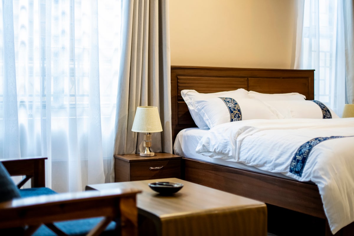 Ten studio na dachu w Gaba oferuje naprawdę zapierające dech w piersiach widoki. Z piątego piętra (na dachu) rozciąga się widok na połyskujące wody jeziora Wiktoria i Munyonyo. Przygotuj się na niezapomniane wschody słońca i wieczory rozświetlone gwiazdami z wyjątkowego punktu widzenia. To idealne miejsce dla par, osób podróżujących samotnie lub każdego, kto szuka spokojnego wypoczynku z widokiem bez rozbijania banku.
