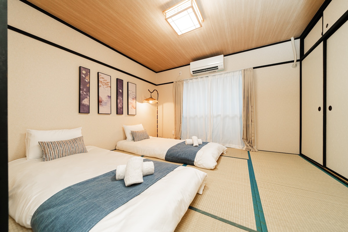 一室一厅/大空间/南海新今宫站1分钟/双床大房/直达关西机场/難波/天王寺/通天