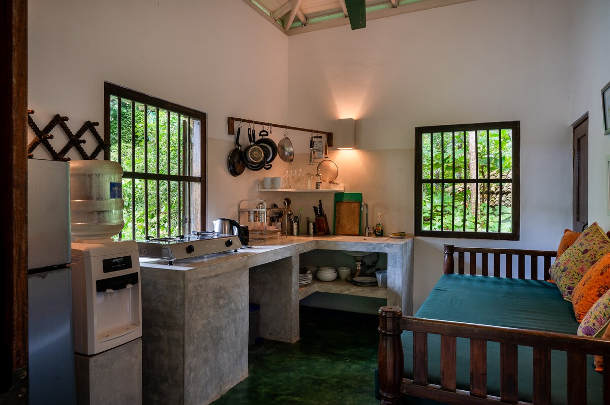 Name : Galle Vacation Located very close to historic Galle town, Dutch Fort and beach, a lovely traditional family 1 bedroom house beautifully restored set in a tropical garden. 3.4km to beach 1km to Thomas college 2.9km to Galle international college 3.1km to German-SriLanka Friendship Hospital for Women 3.4km to Karapitiya teaching hospital 4km to Galle Town 300m to SOS children's village &gym. 500m to supermarket With Air Conditioning+1400SLR/ night (around 3-4 USD)