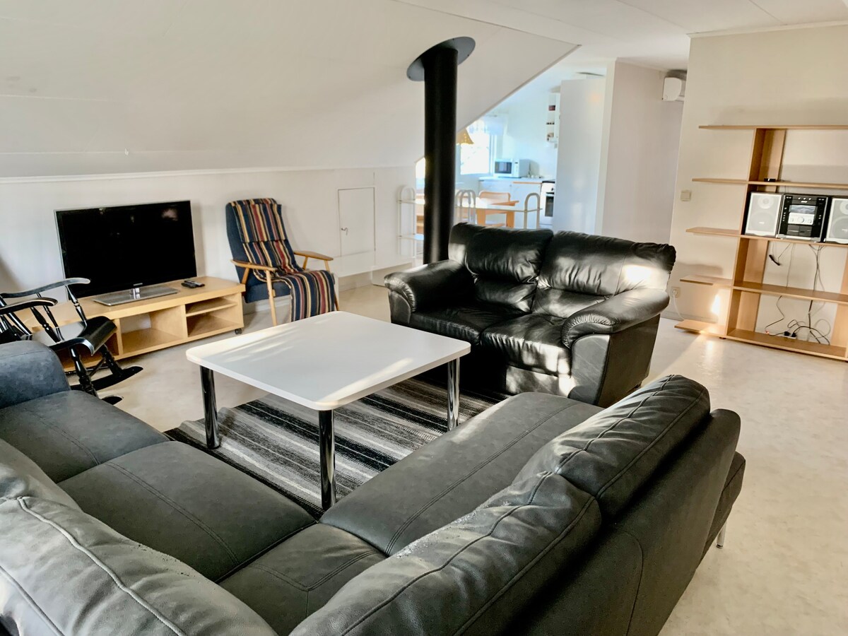 24/7 Check-in. Cleaning is included before arrival and after check-out. The 160 bed is made with clean bed linens, and we will provide you with both small and big towels. Free, private parking outside the apartment. 50 meters walk to the big food market. You live in the City Centre, so it is close to restaurants and shops. Swimming, bowling and gym hall is 1 km from the apartment. The kitchen is fully equipped and will also include a coffee maker, water kettle, microwave and a dishwasher.