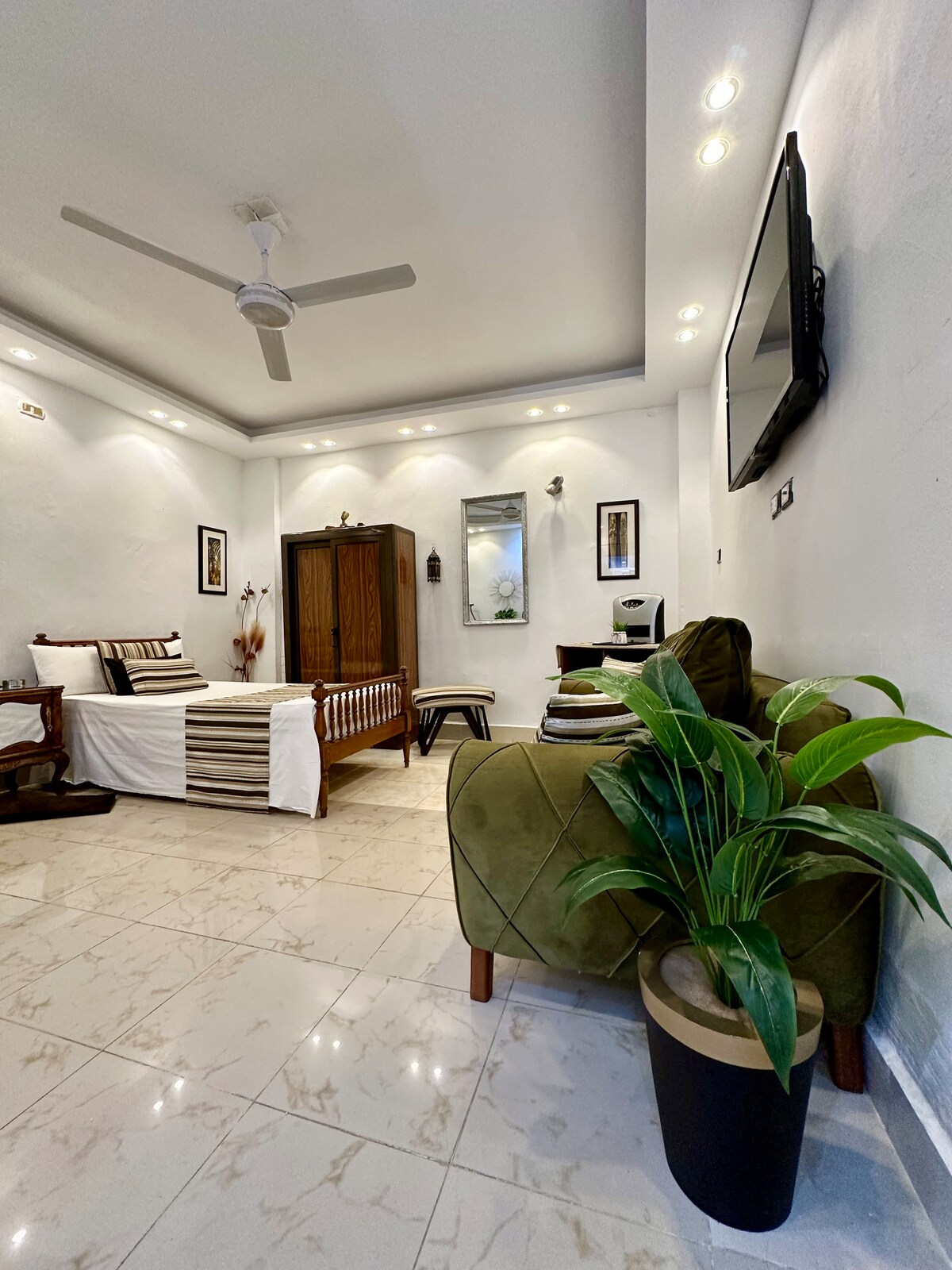 Welcome to Cherry Blossom, a cozy and stylish apartment in New Cairo’s Fifth Settlement. Enjoy rare in-room features like a personal gym corner, dedicated workspace, and a relaxing reading nook. The apartment is equipped with two high-speed fiber-optic Wi-Fi sources for uninterrupted connectivity. With a comfy queen bed, kitchenette, smart TV, and a peaceful patio, it’s perfect for business trips or quiet getaways. Just minutes from 90 Street, top malls, cafes, and all essentials.