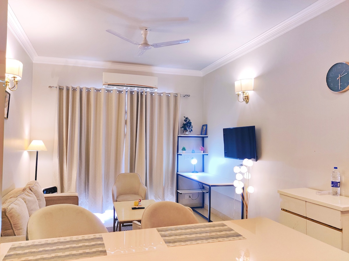 Indulge in a luxurious stay at Bloom Central, where modern elegance meets comfort. This stylish 1BHK features a chic open kitchen, a private balcony, and exclusive access to premium amenities including a serene pool and secure parking. Perfectly located in the heart of Gurgaon, it offers an upscale retreat for guests seeking sophistication, convenience, and a truly elevated experience.