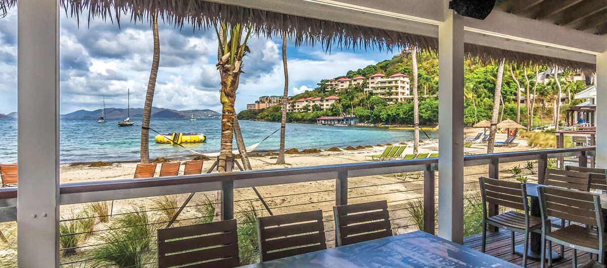 The US Virgin Islands await you! Beach front Resort, truly a perfect tropical dream-come-true! 2 POOLS! Come enjoy a margarita and kick off your flip-flops, sip a tasty drink and let your gaze rest upon an expanse of beautiful sand, crystal-clear waters, and St. John Island in the distance. Restaurant on property! Coki Beach is within walking distance ( 5min walk) Resort is situated very close to Red Hook for shopping and dining ! *Please note -Guest Access - for resort more information.