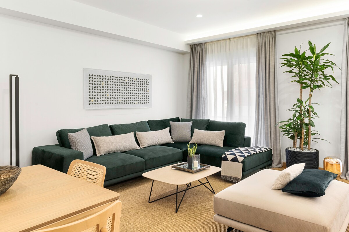 Stylowe, słoneczne, nowe 2 sypialnie, centrum Aten