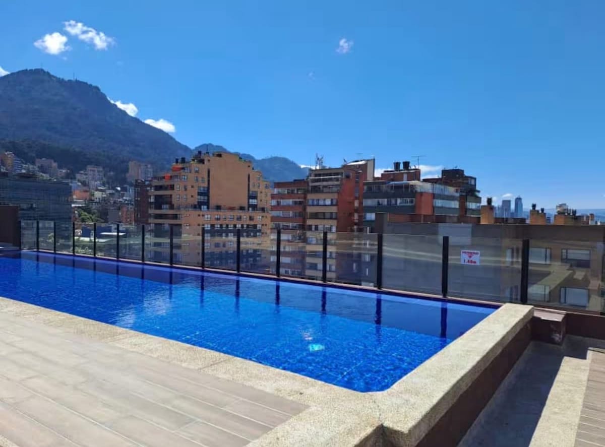 Odkryj Bogotę z tego nowoczesnego i wygodnego apartamentu z prywatnym tarasem, który jest jedyny w okolicy. Idealnie nadaje się do podziwiania zachodów słońca, czytania, pracy na świeżym powietrzu lub spędzania wieczorów przy kominku. Idealne dla par, cyfrowych nomadów i podróżników, ze strategiczną lokalizacją w pobliżu obszarów turystycznych, restauracji i transportu publicznego. Wyposażona kuchnia, podwójne łóżko i biurko zapewniają niezapomniany pobyt To miejsce ma strategiczne położenie: zaplanowanie wizyty będzie bardzo łatwe!