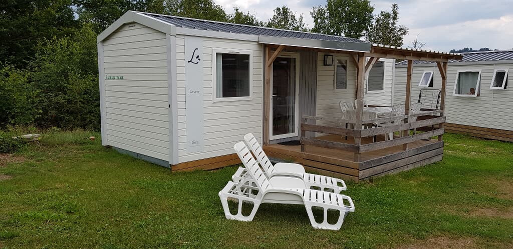 Das modern eingerichtete Mobilheim Schneewittchen ist 27qm groß und bietet Platz für 4 Personen. Im ersten Schlafzimmer befindet sich ein Doppelbett. Im zweiten Schlafzimmer befinden sich 2 Einzelbetten. Das Bad besteht aus Dusche und WC. Im Wohnzimmer befindet sich eine Essecke und ein Fernseher. Küchenzeile mit Mikrowelle, Kaffeemaschine, Kühlschrank, Herd, Geschirr und Essecke lässt keine Wünsche offen. Auf der schönen Terrasse können Sie die Sonne genießen.