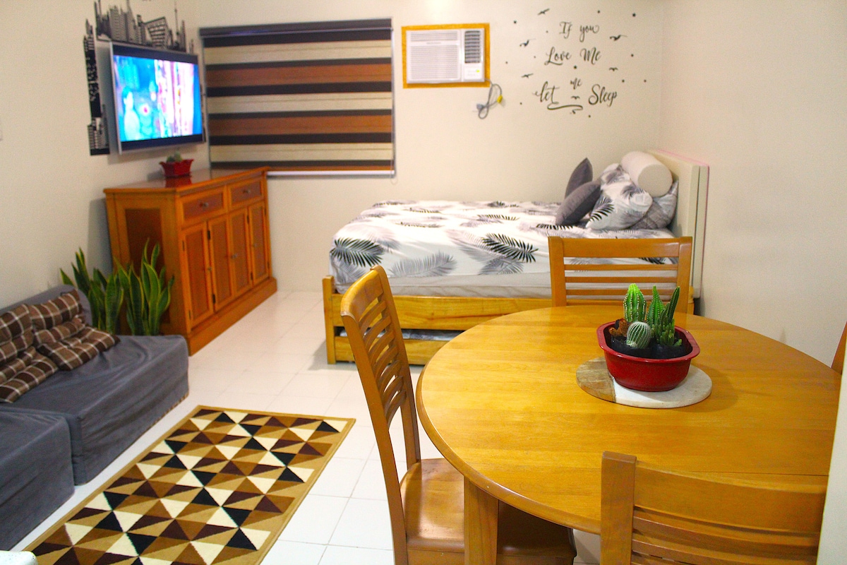 Zrób sobie przerwę od miasta w miastie, nie wydając fortuny. Jeśli szukasz miejsca, w którym możesz spędzić czas z bliskimi, nie opuszczając metropolii, to idealne miejsce. Poczuj powiew świeżego powietrza po wejściu do bramy, ponieważ zostaniesz powitany przez sosny, które zapewnią Ci chłodny klimat Tagaytay i Baguio. W apartamencie znajduje się balkon, pralnia, przybory kuchenne, 50-calowy telewizor Smart TV, duże łóżko i inne udogodnienia potrzebne do pełnego pobytu.