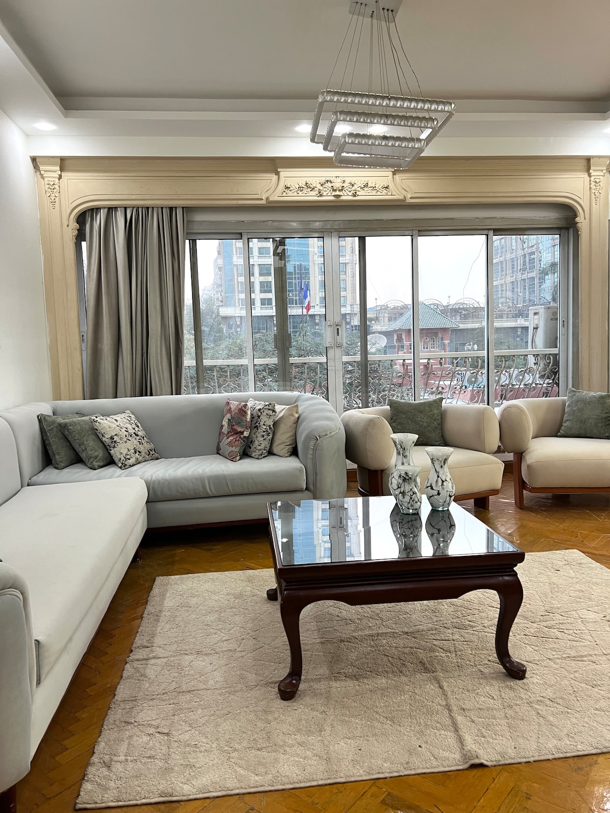 Ten jasny, przytulny apartament gwarantuje najlepszy widok na rzekę Nil, gdzie można się zrelaksować i podziwiać zachód słońca w 127m z 3 sypialniami w zabytkowym budynku z XX wieku w bardzo bezpiecznej okolicy. to miejsce jest najlepiej położone w większości atrakcji turystycznych i miejsc tętniących nocnym życiem od 2 do 6 km do muzeum egipskiego, wieży Kairskiej, meczetu Muhammad Ali, centrum Kairu,Zamalek, Mohandessin , 1 min spaceru do supermarketu, pralni , restauracji , apteki