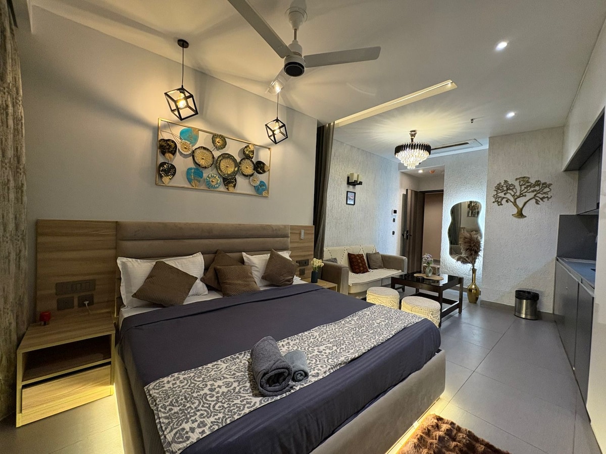 * Apartament typu studio w wieżowcu położony w centrum Noida, idealny dla młodych dorosłych poszukujących luksusu i wygody * Prywatny balkon z oszałamiającym widokiem na rzekę Jamunę * W pełni wyposażona kuchnia, klimatyzacja i dostęp do kawiarni na miejscu * Na miejscu znajduje się apteka i sklep spożywczy * Nowoczesna siłownia i spokojny ogród do jogi * to studio to luksusowe miejsce wypoczynku z wygodami i zaletami stylu życia