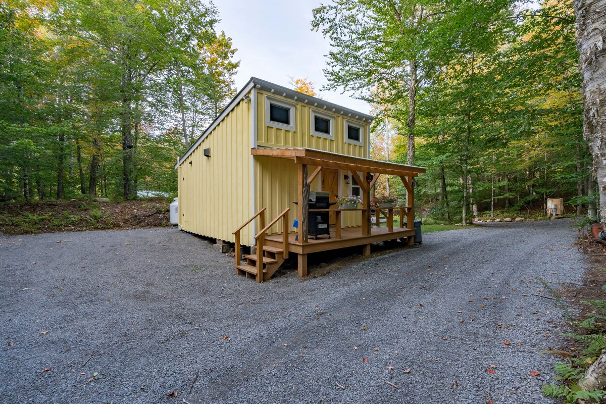 Nowoczesny domek na farmie nad rzeką Delaware z oszałamiającymi widokami rozciągającymi się na 1 milę w obu kierunkach. Ten 4-sezonowy domek ma klimatyzację i ogrzewanie oraz kącik jadalny w kuchni dla 4 osób, który można przekształcić w łóżko dla dwojga dzieci lub jednej osoby dorosłej. W tej kuchni znajdziesz lodówkę, piekarnik i kuchenkę mikrofalową. W łazience znajduje się toaleta ze spłuczką, umywalka i prysznic. W sypialni znajduje się materac typu memory foam i duże okna, przez które słychać szum wody.