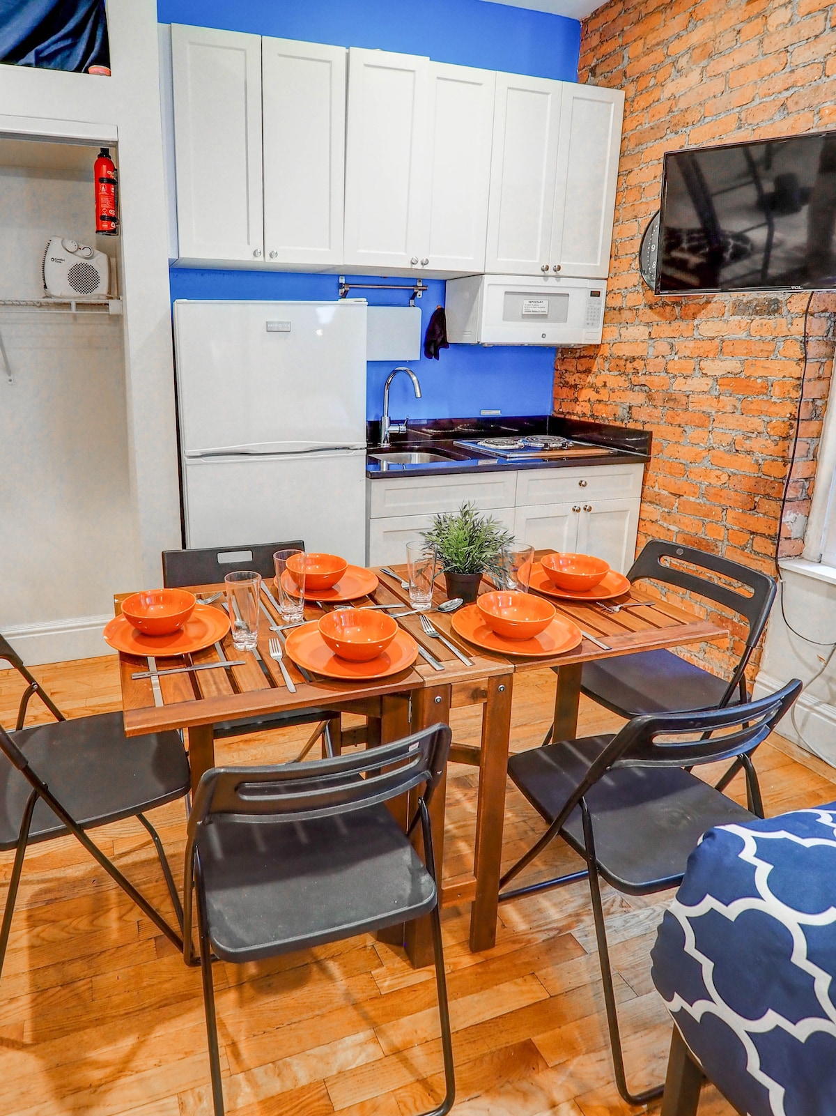 Witamy w Tripoli Artisan Lofts! To 2-osobowe łóżko w samym sercu Bushwick jest idealną bazą w Nowym Jorku dla grup do 5 osób. W okolicy znajdziesz kultową sztukę uliczną, niesamowite restauracje i tętniące życiem kluby nocne. Wnętrza, które kiedyś były domem słynnego artysty, zachwycają swoim wystrojem. Na tarasie na dachu – rzadkim luksusem w Nowym Jorku – znajduje się hamak i łańcuch świetlny. Bezpłatny parking na ulicy i 5 minut spacerem do metra sprawiają, że jest to idealne miejsce dla tych, którzy chcą bezproblemowego pobytu w pobliżu wszystkich atrakcji.