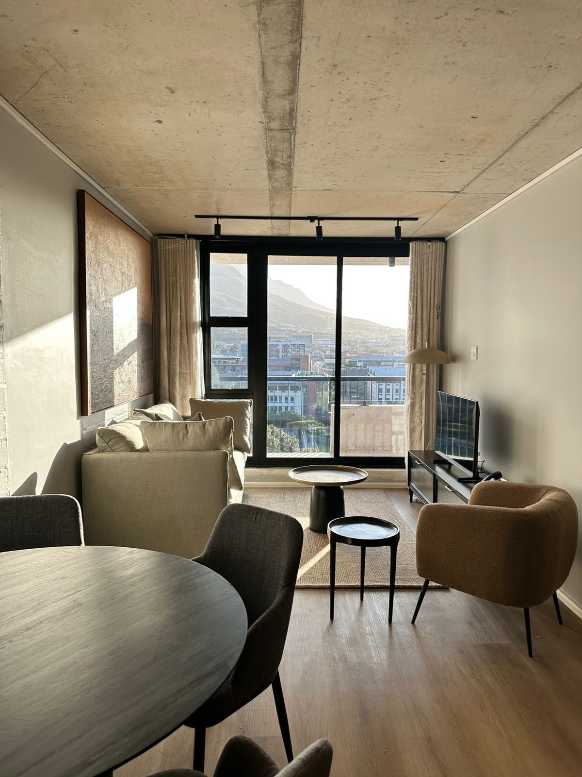 Sparkling new open plan bedroom/living room in one studio on the top floor of the cutting edge WEX1 complex, located directly opposite the Woodstock Exchange. Magnificent views of Table Mountain and the city and relax with all the amenities of home near to hand. Uncapped Wi-Fi that's not affected by loadshedding. Easyview DSTV package, Netflix, gym, heated pool, lounge, laundry, supermarket, a parking, and 24hrs security, you can chill in splendour or be part of the action within minutes.