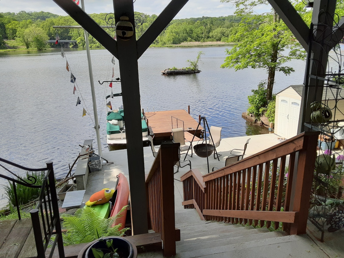 Ciesz się prywatnym patio z widokiem na jezioro lub po prostu przejdź 12 kroków do brzegu jeziora i odwiedź przytulny niższy poziom i ciesz się huśtawkami. Skorzystaj z naszych kajaków i nie zapomnij zabrać wędki, popływaj lub po prostu usiądź na słońcu z książką i słuchaj wodospadu i możesz usiąść przy palenisku Opcjonalne miejsce do cumowania łodzi, parking Gospodarze mieszkają na górze Dwie mile do urokliwego centrum Sandy Hook ze sklepem spożywczym i restauracjami Wszyscy goście muszą się zarejestrować 90 minut do Bostonu/Nowego Jorku