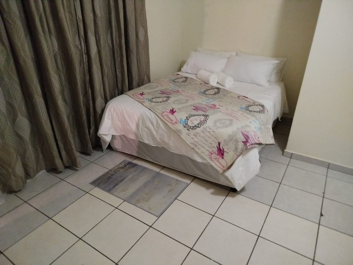 Umeblowane, samoobsługowe mieszkanie jest przestronne i ma sypialnię z łóżkiem typu queen, łazienkę i oddzielną część dzienną z kanapą, telewizorem i aneksem kuchennym. Układ słoneczny – bez ograniczeń! Dostępne jest łóżko kempingowe, a łóżko pojedyncze można ustawić na życzenie za dodatkową opłatą. Wszystkie udogodnienia niezbędne na krótki pobyt. Znajduje się 400 m od Afridome i 2 km od rzeki/Breë Street, gdzie można cieszyć się naszym pięknym miastem z różnorodnymi galeriami, sklepami z antykami, restauracjami.