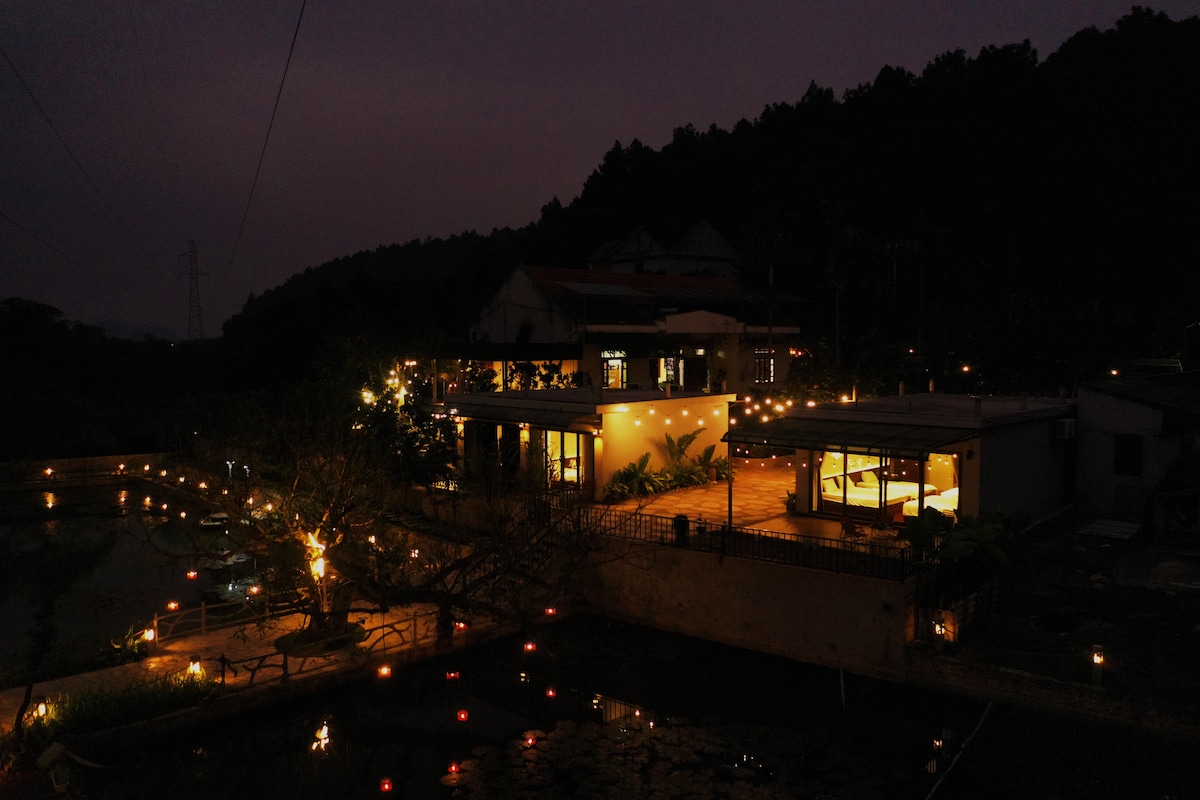 Thanh Xuan Garden Villa offers a luxury retreat set in the natural beauty of Cuc Phuong. This modern villa features three lake-view sides with a stream running through the garden, five spacious bedrooms with large glass windows and elegant bathtubs, and a private 150 m² pool. A 2000 m² garden provides space for dinners, BBQs, or boutique events. Guests enjoy free access to hot and cold mineral pools, premium sports areas, and resort bicycles. Ideal for private, peaceful retreats great escape!