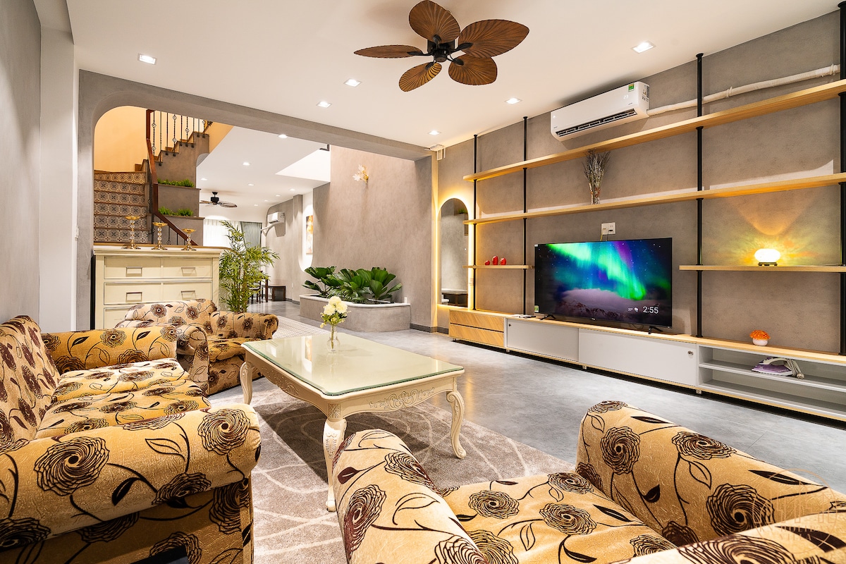 Europejska neoklasycystyczna willa, luksus, cisza w centrum miasta. Obejmuje 1 piwnicę, 1 parter, 2 piętra, 9 sypialni (prywatna toaleta), 2 dodatkowe toalety zewnętrzne. Salon z wysokim sufitem, ekskluzywne meble, fortepian. Rozrywka z karaoke z dźwiękiem przestrzennym, bilard, kryty basen. Duża sypialnia, zielony balkon, relaksująca wanna. W pełni wyposażona kuchnia, grill na świeżym powietrzu, bezpłatne sprzątanie, całodobowa pomoc przy zameldowaniu. Idealne dla rodziny, pary, grupy przyjaciół. Cieszymy się, że możemy Cię gościć! Z poważaniem,