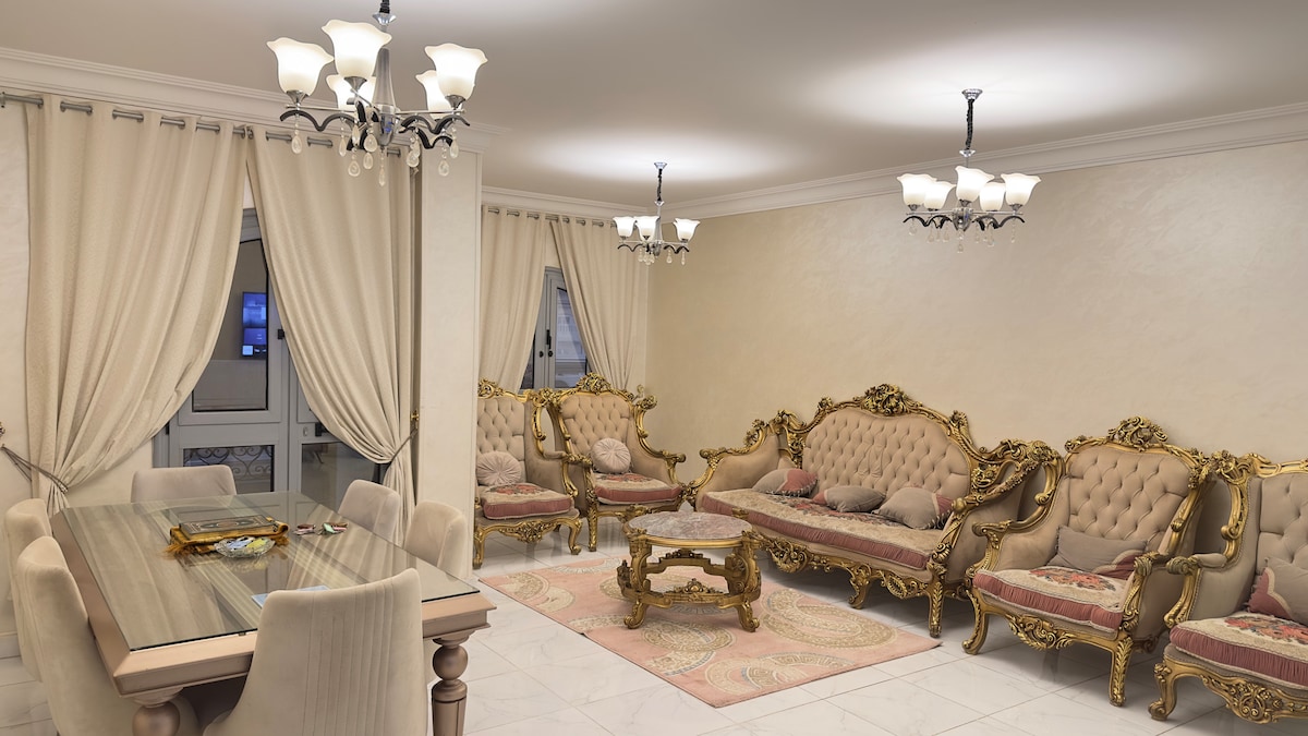 Luxurious aprtment in the cozy neighborhood of Nasr city, 5 mins to City Stars mall, 10 mins to Almaza city center mall and 20 mins to the airport. The apartment is recently renovated, and fully furnished with AC units for all living spaces. 1 master bedroom with bathroom, 2 bedrooms, 2 bathrooms, living room and spacious reception The building has two elevators serving the place.