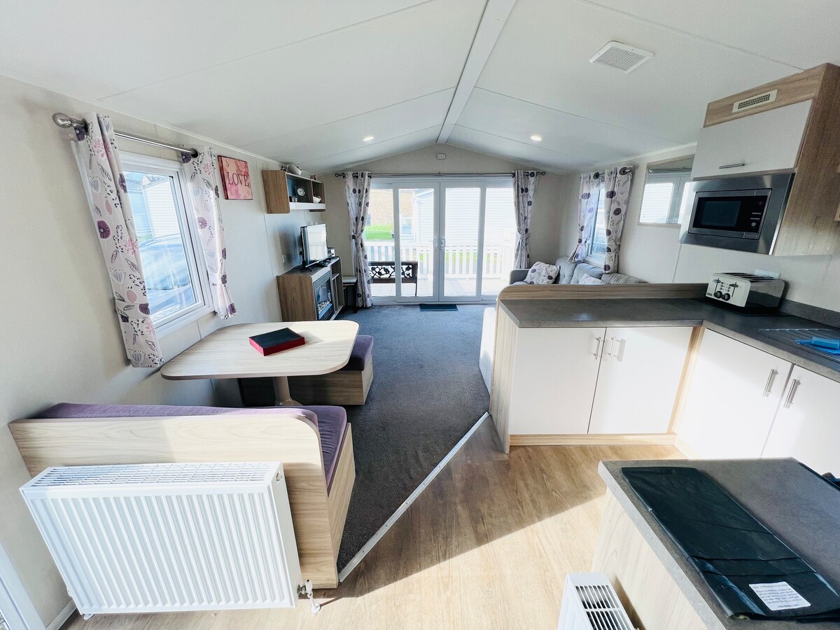 Piękna przyczepa kempingowa z 3 sypialniami (5 łóżek) położona na Lower Hyde Holiday Park na wyspie Wight. Jedna sypialnia z podwójnym łóżkiem i dwie sypialnie z łóżkami pojedynczymi 2 x łazienka W pełni wyposażona kuchnia Taras zamknięty Dostarczona pościel Zakaz wprowadzania zwierząt / Zakaz palenia W przypadku zabezpieczonych rezerwacji dostępny jest zniżkowy bilet na prom (w zależności od dostępności) Baseny wewnętrzne i zewnętrzne (ze zjeżdżalniami), wieczorna rozrywka, bar, restauracja, sklep, pralnia i inne udogodnienia. Jeśli zdecydujesz się korzystać z tych udogodnień, karnety na nie można kupić w recepcji parku. Obiekty otwarte od kwietnia do października