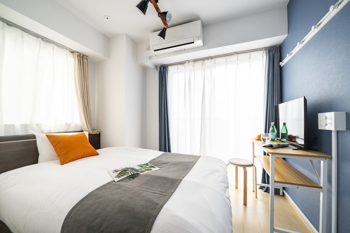 Spokojny, minimalistyczny loft zaledwie jeden przystanek od Shibuya i Roppongi – idealny dla osób podróżujących w pojedynkę lub skupionych na pracy zdalnej. Szybkie Wi-Fi, krzesło Aeron i kompaktowe podwójne łóżko (150×210 cm) – idealne dla jednej osoby, przytulne dla dwóch. Szklana łazienka i eleganckie betonowe ściany nadają mu nowoczesny charakter (uwaga: zimą może pojawić się skroplona para – wystarczy włączyć wentylator w łazience). Chociaż nie ma szafy, w przestrzeni zmieszczą się cztery duże walizki. Jest też drążek do wieszania i dziesięć haczyków ściennych, dzięki którym wszystko będzie uporządkowane. Cotygodniowa usługa prania.
