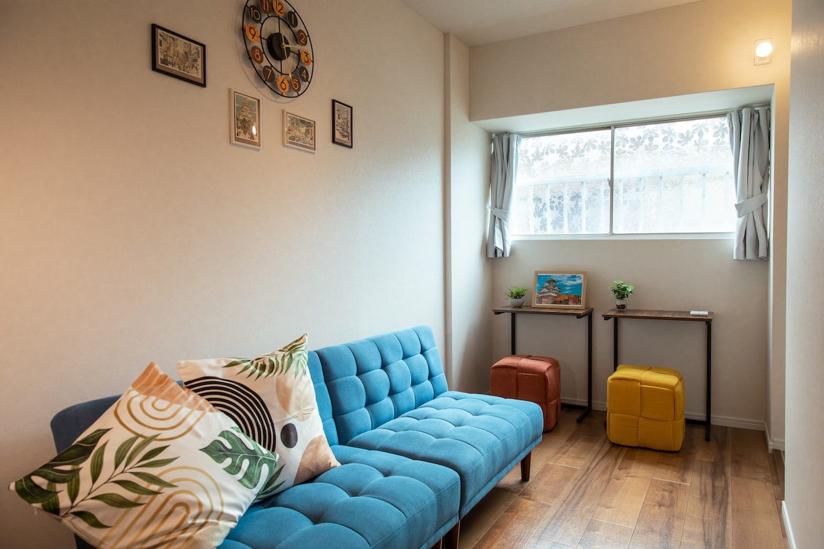 Ruo Yexi House „Pokój 201”, 2 minuty od Kurobimono Market w Osace, 3 minuty od stacji metra Nihonbashi. 43m² apartament z jedną sypialnią i salonem