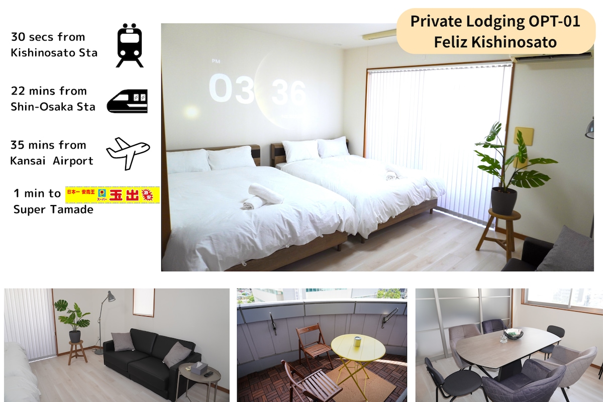Kansai Airport Train bezpośrednio do Namba / Dotonbori / Shinsaibashi Universal Studios Kyoto Nara, 5 minut spacerem od stacji Tenjichaya, 2 sklepy spożywcze w odległości 1 minuty spacerem