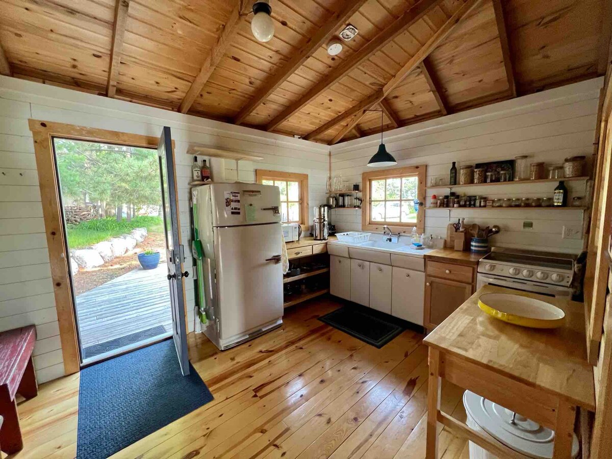 Zamieszkaj w domku Ursa Minor w sercu lasu. Zbudowana w 2017 roku, ta wygodna i spokojna chata zawiera w pełni wyposażoną kuchnię, łazienkę z prysznicem wyłożonym cedrem, elektryczne ogrzewanie podłogowe, piec na drewno, ciepłą sosnową siding i przestronną sypialnię na poddaszu. Zadaszony ganek, palenisko i w pełni zaopatrzona szopa na drewno znajdują się tuż za drzwiami. Twój pobyt obejmuje dostęp do ponad dziesięciu kilometrów szlaków przecinających setki akrów prywatnych lasów, które zaczynają się kilka kroków od Twoich drzwi.