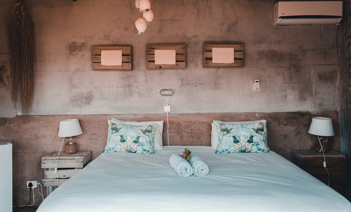 Przestronny domek z 2 sypialniami, werandą i prywatnym ogrodem. W pełni wyposażone do samodzielnego wyżywienia. Oba pokoje są wyposażone w łazienkę. Otwarty salon, jadalnia i kuchnia. Falownik do odciążania. Darmowe Wi-Fi. Możliwość wyboru łóżka typu king lub 2 łóżek pojedynczych w pokoju.
