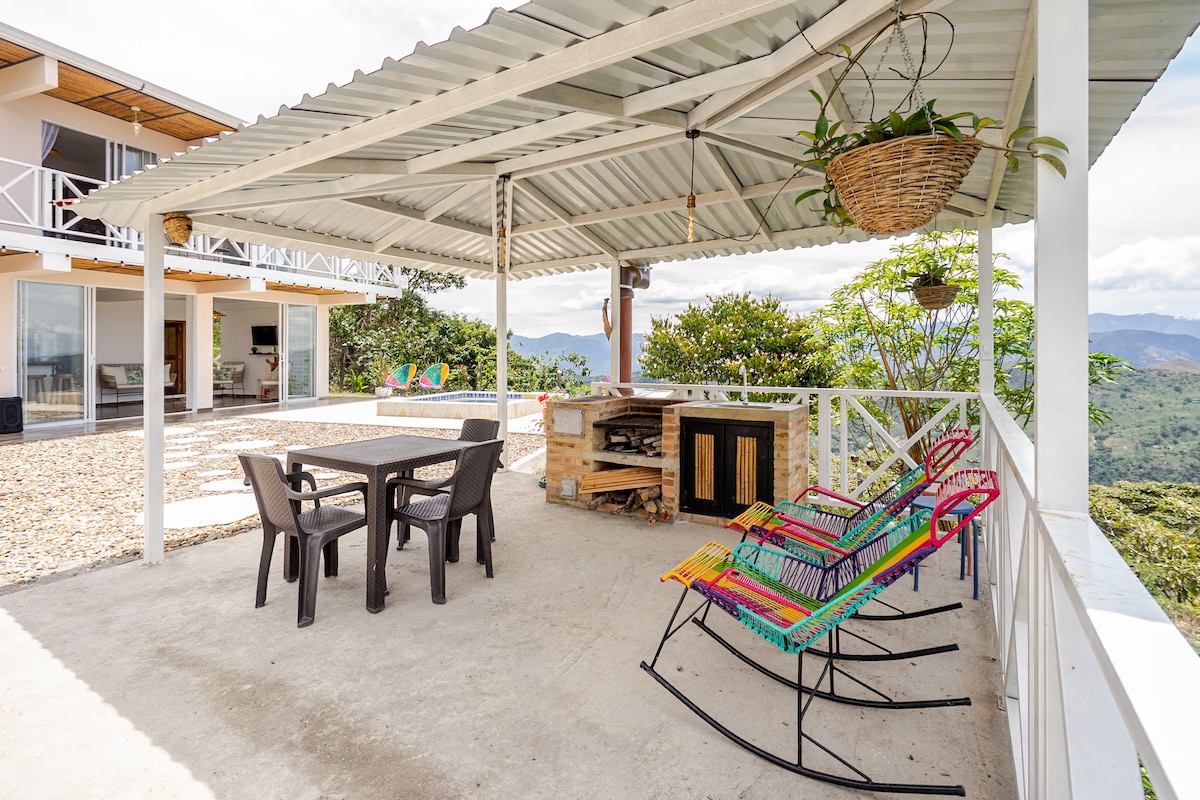 Escápate a 6 km del pueblo y disfruta de una finca rodeada de naturaleza. Piscina con tobogán, jacuzzi, billar, ping pong, kiosco con BBQ y parque infantil. 4 espacios, 7 camas y 3 baños. Trae tu mercado para cocinar o pide domicilios (costo extra). Paisajes hermosos, rutas eco y tiendita cercana con snacks y cerveza. Ideal para desconectarse y vivir momentos únicos. 🚗 Recomendado carro alto (traslado opcional).