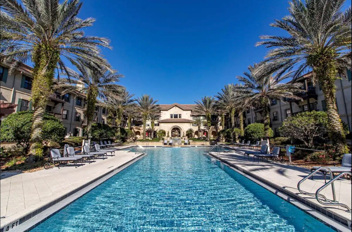 Entire modern, luxurious, and spacious apartment. Stunning lake-front view with gorgeous sunsets. Large king bed and queen sleeper sofa provide a comfortable stay for 4. Whether your stay includes a day of shopping, a trip to golf, going to work, or to unwind at the beautiful Jacksonville beaches, you are never far from your destination. Less than 5 miles to the St. Johns Town Center, 7 miles to the nearest hospital, 11 miles to the beaches, and 6 miles to the nearest golf course.