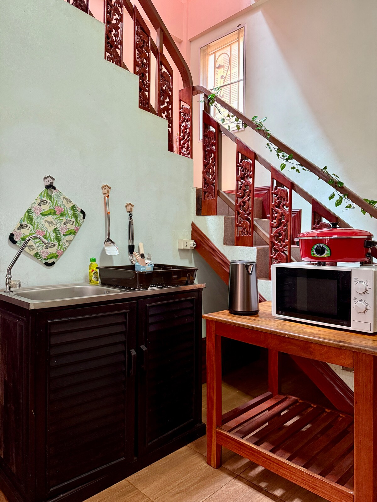Zamieszkaj w odnowionym tradycyjnym laotańskim drewnianym domu z nowoczesnymi udogodnieniami! Ten dwupokojowy apartament z wygodnym salonem i kuchnią z podstawnym wyposażeniem sprawi, że poczujesz się jak w domu. Tylko 300 metrów do Mekongu i 400 metrów do uliczki z nocnymi stoiskami gastronomicznymi we Wientianie. W pobliżu znajduje się Mini Big C, lokalne restauracje, kawiarnie, księgarnie, salony kosmetyczne, słynne atrakcje turystyczne i inne ciekawe miejsca! Idealne dla rodziny i grupy znajomych. Zapewnij usługę sprzedaży biletów na autobusy i pociągi szybkobieżne.