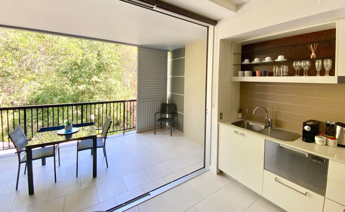 This luxury apartment is in a Prime position in a 5 Star Resort alongside Noosa National Park and only 500 meters stroll to the beautiful Noosa beach and the amazing Hastings Street shops and restaurants . Beautiful one bedroom apartment with a lush forest outlook, a quiet and private setting, access to resort facilities such as resort lagoon pool, gym, lap pool, games room and steam room. We are located in the Pacific building on the second floor which is accessed by stairs or lift.