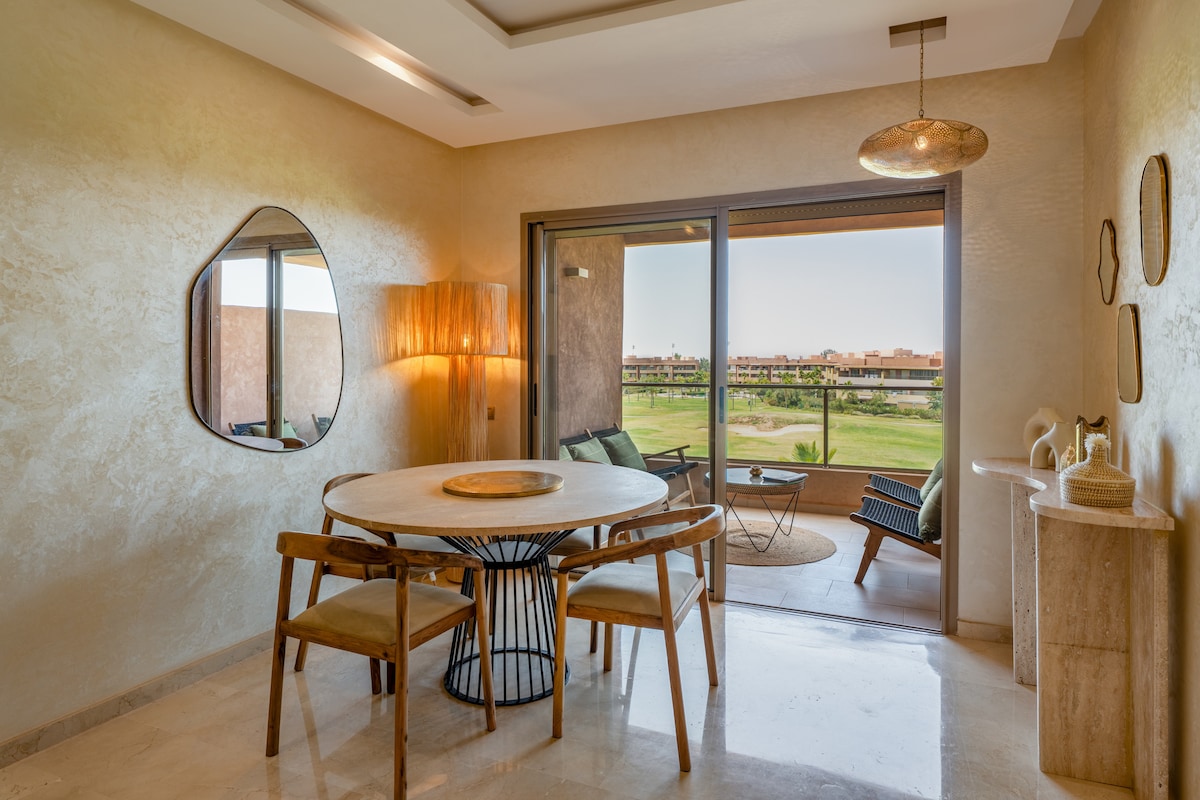 Witamy w naszym apartamencie położonym w samym sercu Marrakeszu, oferującym prawdziwą oazę spokoju podczas Twojego marokańskiego wypoczynku. Idealnie położony w jednej z najbardziej luksusorycznych rezydencji golfowych: w Marrakeszu w Domaine de Noria, nasz apartament zaprasza do odkrycia czarującego uroku czerwonego miasta, oferując jednocześnie spokojne schronienie po dniu spędzonym na zwiedzaniu. Gustownie urządzony i doskonale wyposażony, aby zapewnić niezapomniany pobyt w miście koloru ochry.