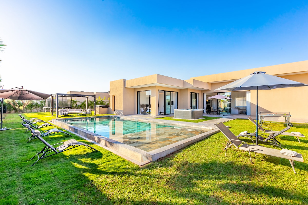 Zaledwie 10 minut od centrum Marrakeszu, Villa LEANA znajduje się w prywatnym i strzeżonym ośrodku golfowym Argan Golf Resort, z wspaniałym widokiem na Atlas. Ta nowoczesna willa, której budowę ukończono w marcu 2023 roku, oferuje komfort zupełnie nowego wyposażenia. Elegancka architektura i staranne wystrój sprawiają, że jest to idealne miejsce na spotkanie z rodziną i spędzenie relaksujących wakacji w luksusowym otoczeniu. Basen z podgrzewaną wodą (dodatkowo 250 Dhs/dzień).