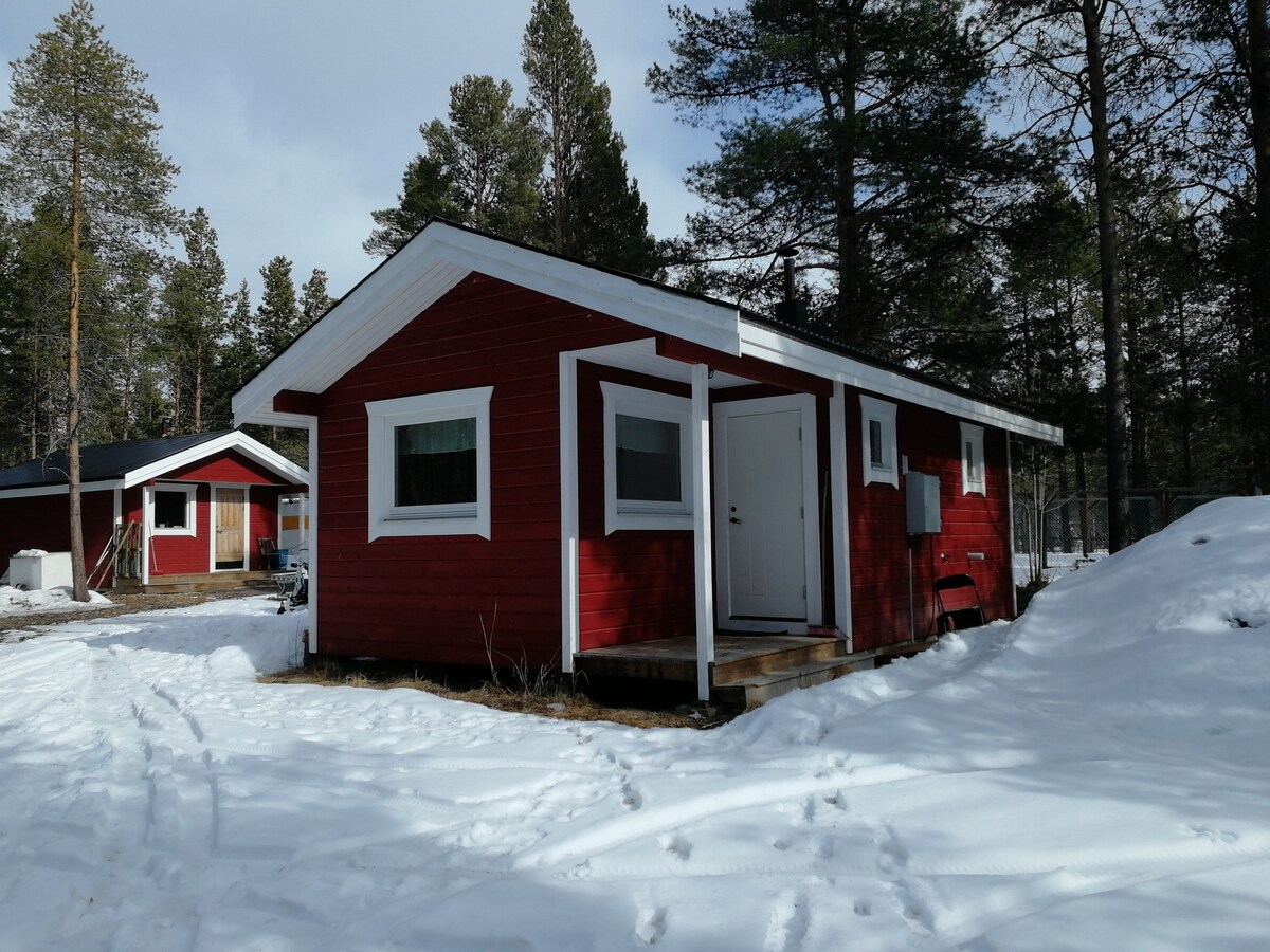 Small cozy cottage in the woods by a lake. 4 beds. 14 km from Kiruna C. 10 km to Ice hotel. Perfect to see midnight sun and northern lights. Peace and relaxation. Nice sauna can be rented for 800 sek - needs to be booked at least one day in advance. Takes 4-6 hours to heat. Own car or rental car is required. Or transport by taxi. No bus connection available. Nearest grocery store is in Kiruna C (15 km) or in Jukkasjärvi (10 km). We also have the his cabin https://www.airbnb.com/l/iZTZ2mpc