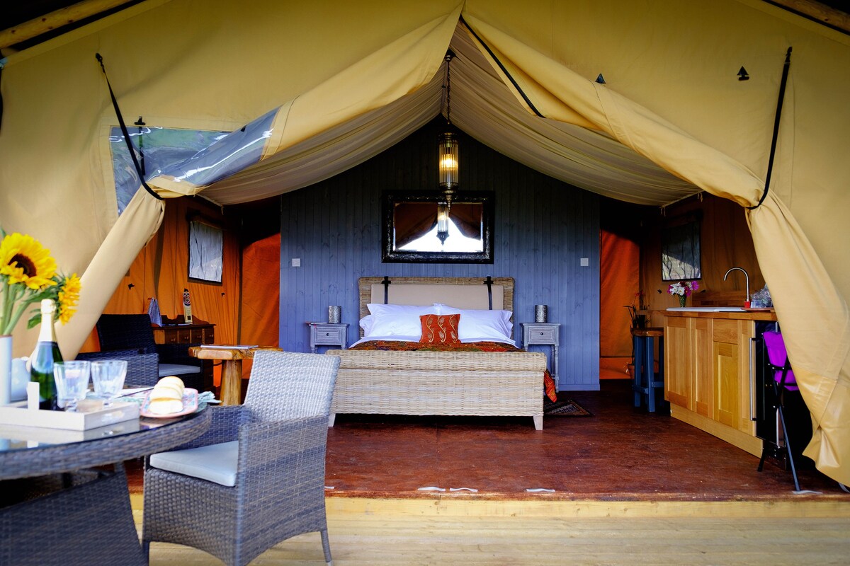Namiot safari Swallows w Dorset, stajnie i bar na miejscu