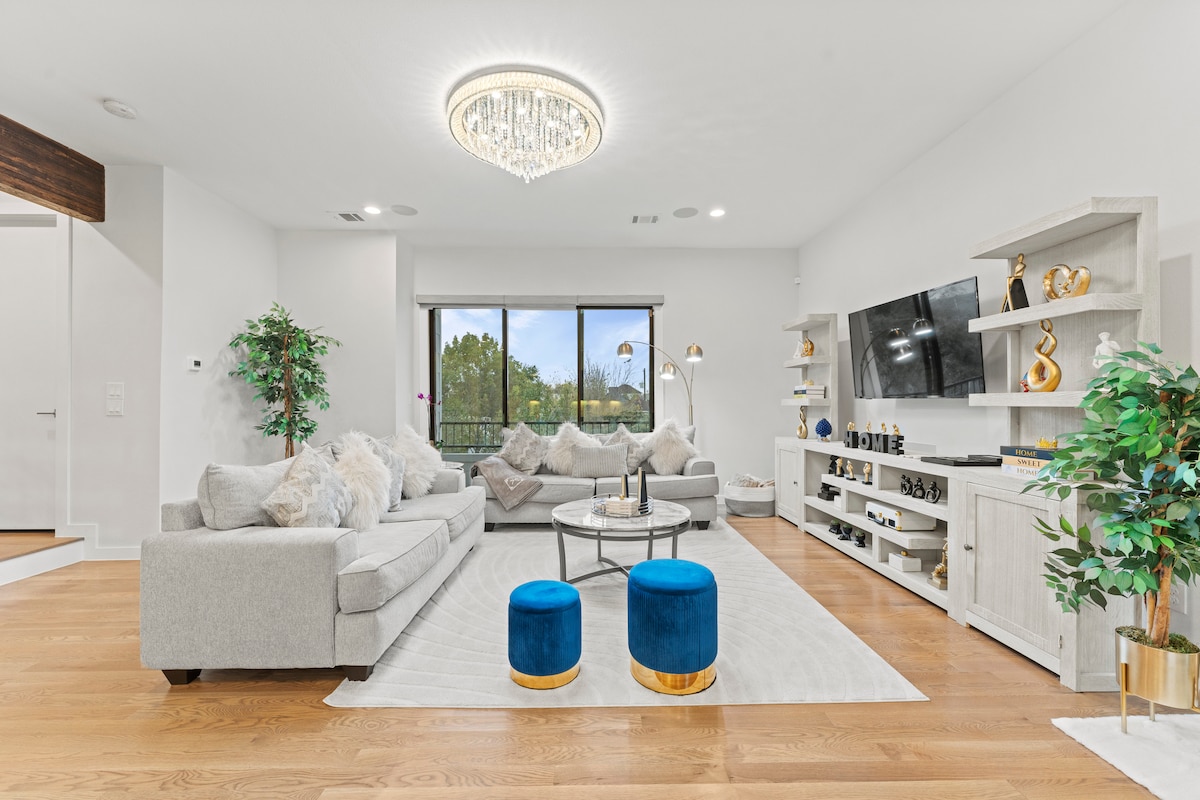 Stylowe/nowoczesne mieszkanie z 1 sypialnią i 1 łazienką w pobliżu The Heights, Houston Zatrzymaj się w tym nowym budynku położonym zaledwie 10 minut od dzielnicy The Heights i 15 minut od centrum Houston. Ciesz się nowoczesnym wystrojem, nowymi urządzeniami, w pełni wyposażoną kuchnią oraz pralką i suszarką. Zrelaksuj się przed 65-calowym telewizorem w głównej sypialni i salonie. Ta osiedle z bramą oferuje dedykowane miejsce parkingowe i przestrzeń do pracy dla dodatkowej wygody. Świetna lokalizacja i przemyślany wystrój sprawiają, że ten dom jest idealny na wypoczynek w Houston! – Elevatxed Co.