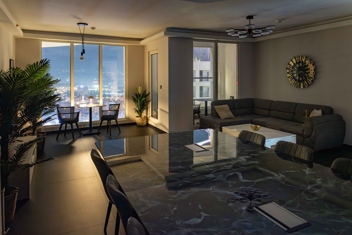 Stay at the highest residential floor in Macedonia — the 40th-floor Sky Loft in Skopje’s iconic Cevahir Sky City Towers. This luxury 2-bedroom, 2-bathroom apartment offers breathtaking city and mountain views, designer interiors, and full access to the tower’s spa, pool, gym, and 24/7 reception. Perfect for families or couples seeking comfort and exclusivity. Free parking, high-speed Wi-Fi, and elevator access included.