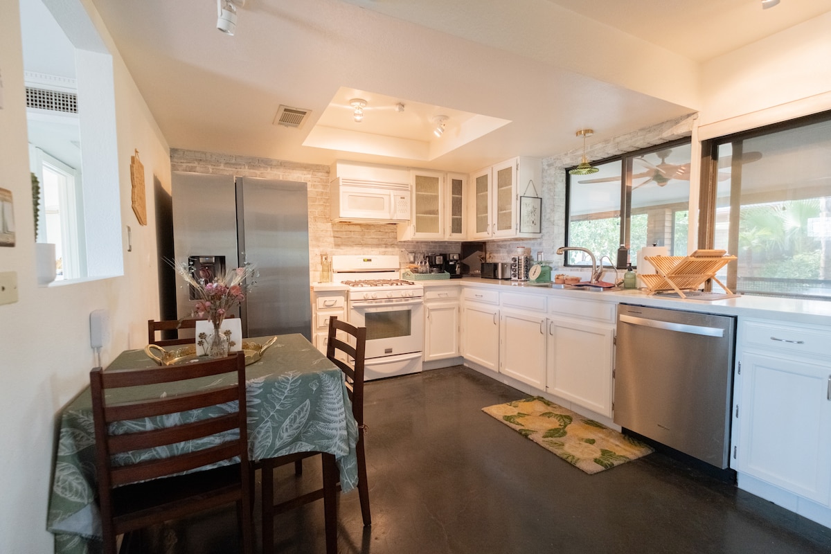 Witamy w Chateau on Rose Garden, świeżo odnowionym domu z 3 sypialniami, 2 łazienkami i poddaszem w północnym Phoenix. Odkryj nowoczesne udogodnienia w pomieszczeniach, w których sklepione sufity, elegancka kuchnia i przestrzeń do pracy na poddaszu stanowią idealne połączenie stylu i funkcjonalności. Urocze i wyjątkowe podwórko z paleniskiem, stołem i różnymi miejscami do siedzenia tworzy relaksującą oazę, w której można delektować się wspaniałą pogodą w Arizonie. Witamy w Chateau on Rose Garden, Twoim spokojnym domu z dala od domu.