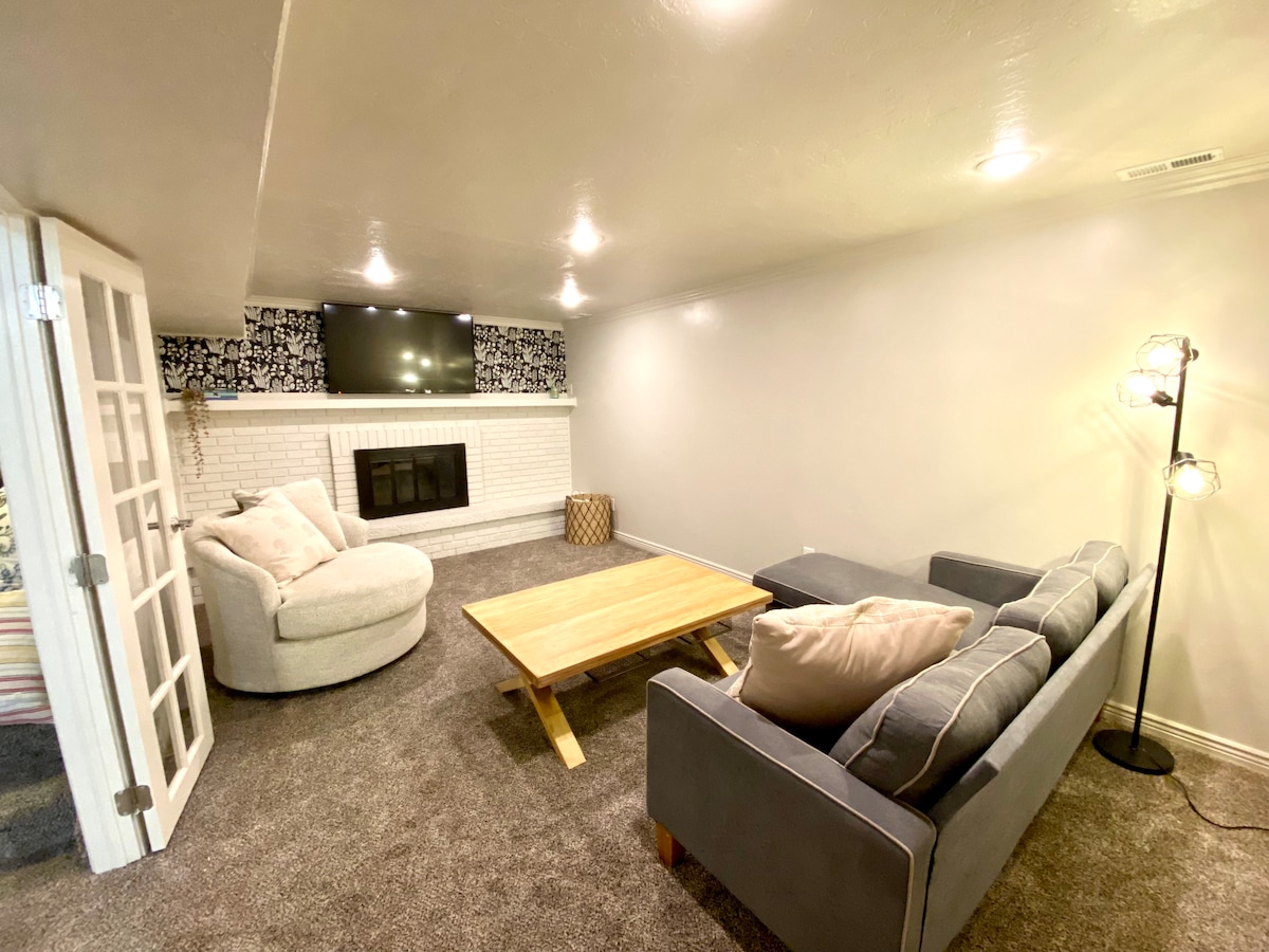 Zjedź z rodziną w piękne góry, wjeżdżając na nasz podjazd! 🏔️ Zrelaksuj się w naszej piwnicy z 2 łóżkami i 1 łazienką; bezpłatny parking, wejście bez klucza, w pełni wyposażona kuchnia, przekąski, pop-a-shot, gry planszowe, konsola do gier retro i wiele więcej! ⛷️20 min ➡️ Nordic Valley Ski Resort ⛷️30 min ➡️ ośrodki narciarskie SnowBasin i Powder 5 min. ➡️ Sklep spożywczy, basen, kino, stacje benzynowe, banki, pole golfowe, RUSH i restauracje! 15 min ➡️ Ogden (25th Street) ✈️50 min ➡️ SLC Airport 🎢40 min ➡️ Laguna