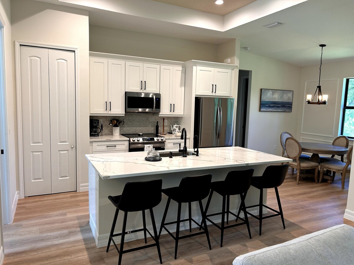 Zupełnie nowy dom. 3 sypialnie, z których dwie to przestronie główne sypialnie, 3 pełne łazienki. Ogromny, osłonięty werandą basen z podgrzewaną wodą, który opiera się o piękny kanał. Łazienka w holu prowadzi do basenu na zewnątrz. Ten stylowy dom z basenem oferuje nowoczesne wnętrza, nowe meble. Wszystko jest NOWE! Szybkie Wi-Fi, zabawki basenowe, artykuły plażowe, 3 duże telewizory, stół do ping ponga, rzutki, przestrzeń biurowa. Popularne plaże w odległości 30-35 minut, a gorące źródło mineralne nr 1 w USA jest oddalone o 15 minut!