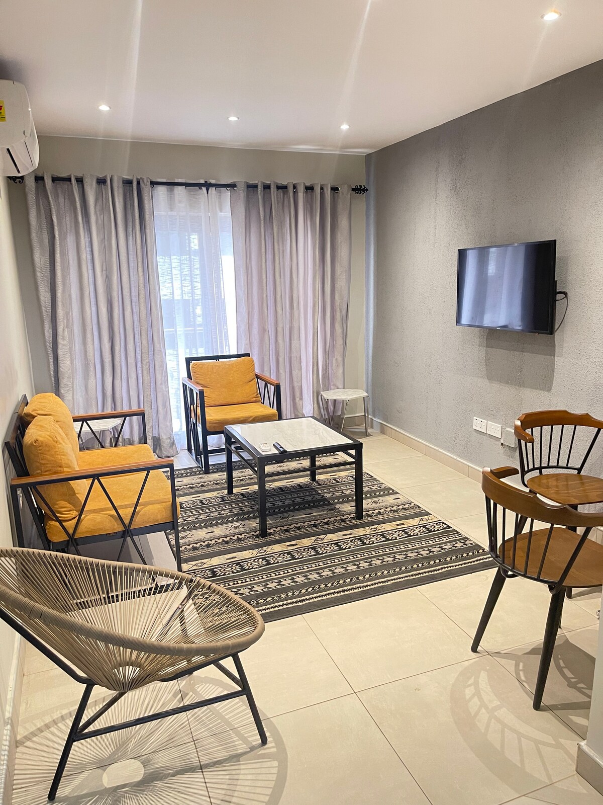 Ciesz się pobytem w tym elegancko urządzonym apartamencie z 1 sypialnią w East Legon w Akrze. Apartament znajduje się 14 minut drogi od międzynarodowego lotniska Kotoka i znajduje się w pobliżu The AnC Mall, Pulse Gym and Fitness oraz kilku restauracji i restauracji, w tym KFC i Pizza Hut. Oprócz tego mamy generator rezerwowy oraz system magazynowania i pompowania wody, dzięki czemu nigdy nie będziesz mieć przerwy w dostawie prądu lub wody.