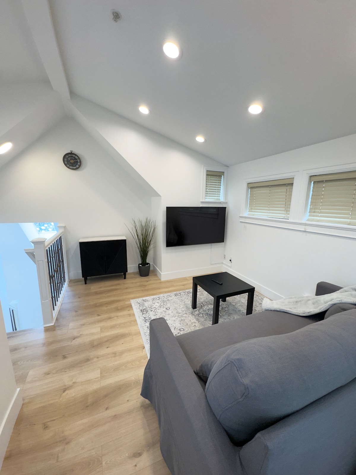 Urocze, niezależne atelier z sypialnią na poddaszu, 4-częściową łazienką i w pełni wyposażoną kuchnią znajduje się na parterze w uroczym ogrodzie. Zrelaksuj się wieczorem z Netflixem w komfortowym salonie i obudź się przy kawie Nespresso, kawie z ekspresu lub wybranych herbat. W odległości spaceru od sklepów spożywczych, sklepu monopolowego, restauracji, parku, kortów tenisowych; blisko komunikacji miejskiej; jeden autobus do skytrain, 8 minut jazdy do modnych sklepów i restauracji na Main Street.