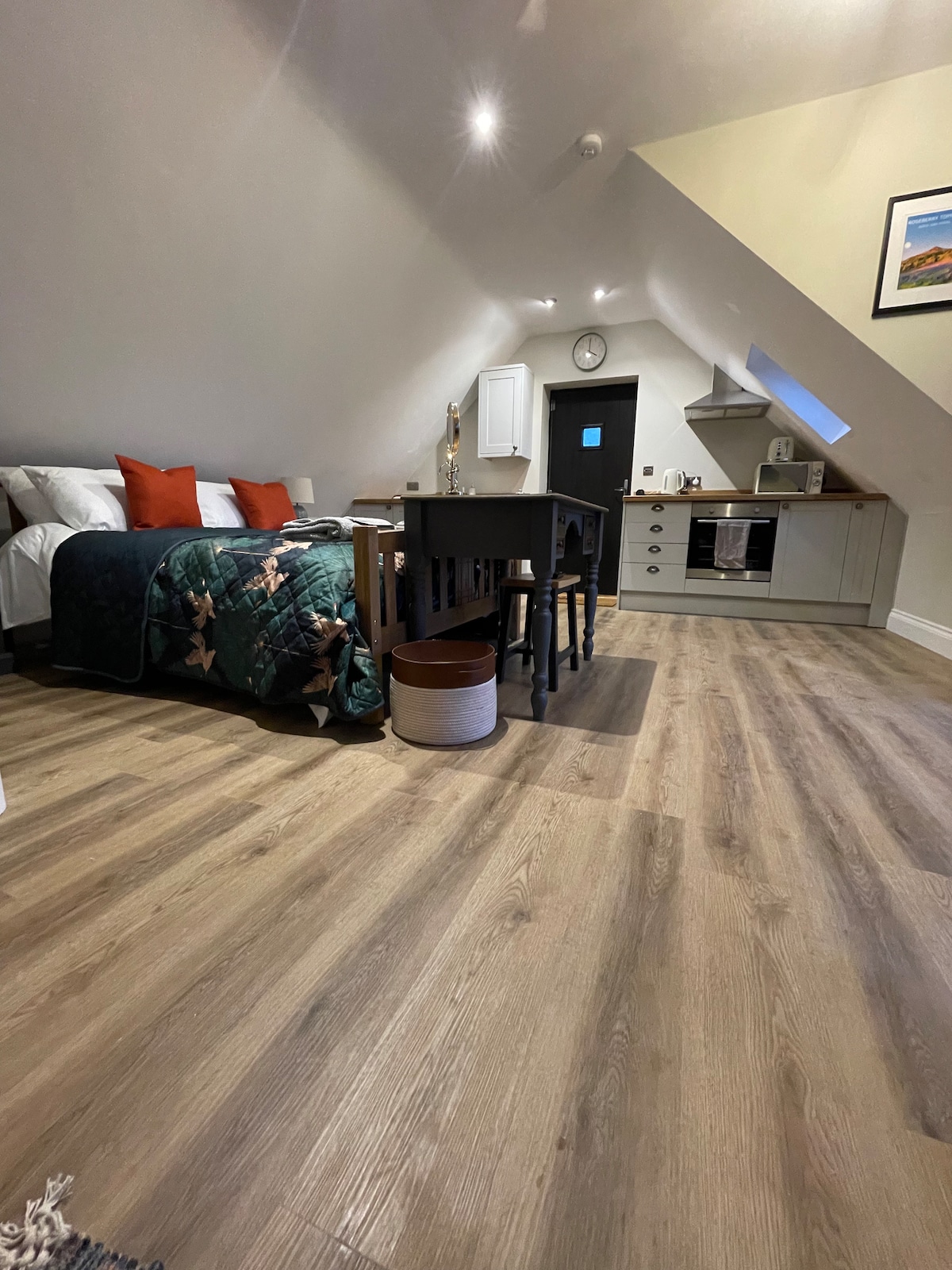 Nook to przebudowana jednostka garażowa, która jest oddzielona od naszego domu z prywatnym wejściem, zewnętrzną częścią wypoczynkową i sejfem na klucze do wejścia. Zakwaterowanie składa się z salonu/aneksu kuchennego, sypialni i mokrego pokoju. Wybór płatków śniadaniowych, herbaty, kawy, cukru i mleka są zapewnione, aby pobyt jak najbardziej komfortowe. Odtwarzacz TV/DVD jest do użytku użytkownika, podobnie jak kuchenka mikrofalowa i płyta indukcyjna do lekkiego gotowania. Do dyspozycji Gości jest wygodne siedzenie i niewielka jadalnia.