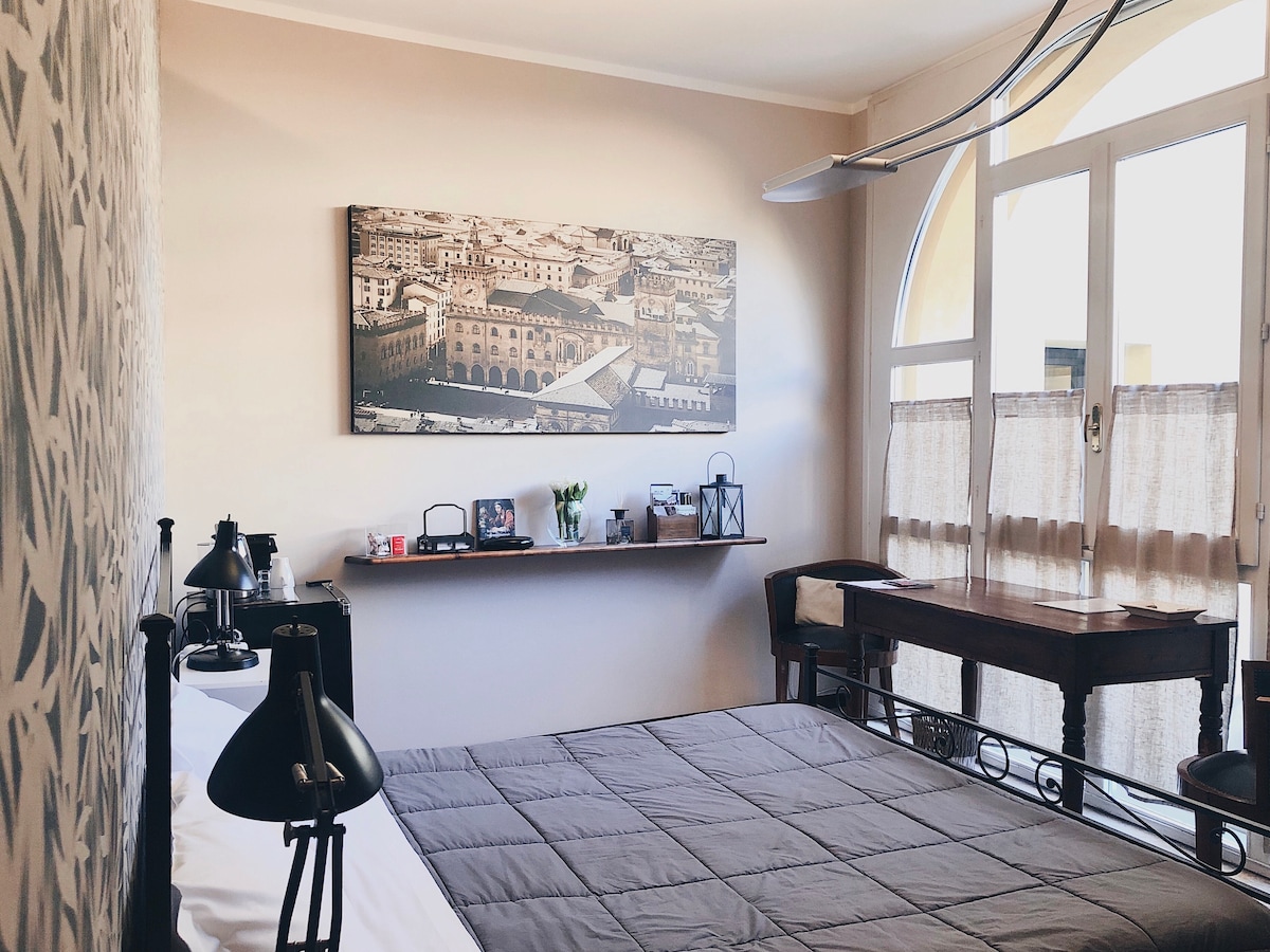 Apartament na pierwszym piętrze z oddzielnym wejściem na 2 poziomach, odnowiony z bardzo drobnymi wykończeniami, parkiet na podłogach, widoczne belki i nowe meble. Jest wyposażone we wszystkie udogodnienia i znajduje się bardzo blisko centralnego placu Piazza Maggiore. Na dole znajduje się salon z w pełni wyposażoną kuchnią, wygodna sofa i telewizor, a na górze wygodna sypialnia, łazienka z oknem i duży, wygodny prysznic. Pościel, ręczniki są zapewnione. Dostępne połączenie Wi-Fi. Klimatyzacja