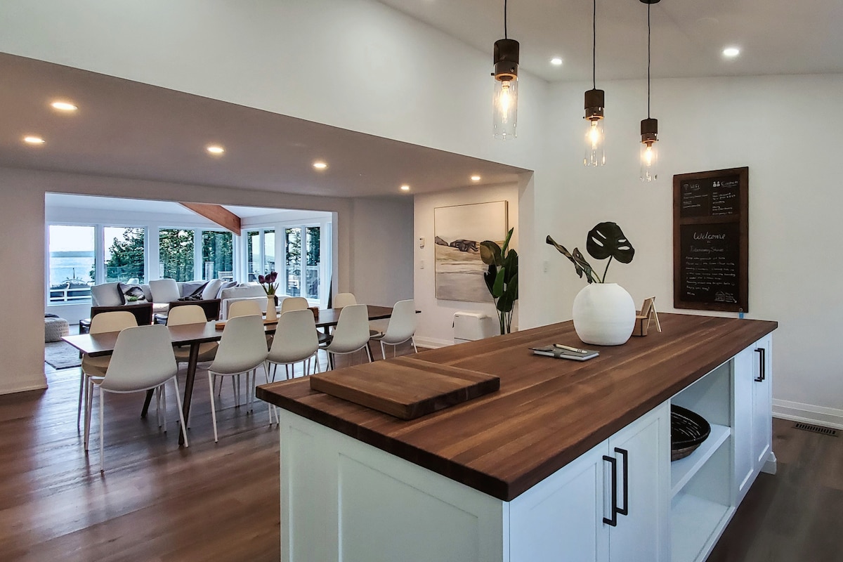 Fairwinds Lake House is a waterfront luxury cottage built in 2020. With its private water access, large deck and amazing sunset views it is the perfect location for your family vacation. Fairwinds looks out on Lake Huron and is a 10 min. drive to Tobermory. ***Guest limit is 10. Max. 8 adults(age 13+) plus 2 guests under age 12 according to local STA Licensing of North Bruce Check-in is 4pm, check-out is 11am NO PETS. NO SMOKING. July/Aug. min. 4 night. Aug30-June28 min. 2 night min.