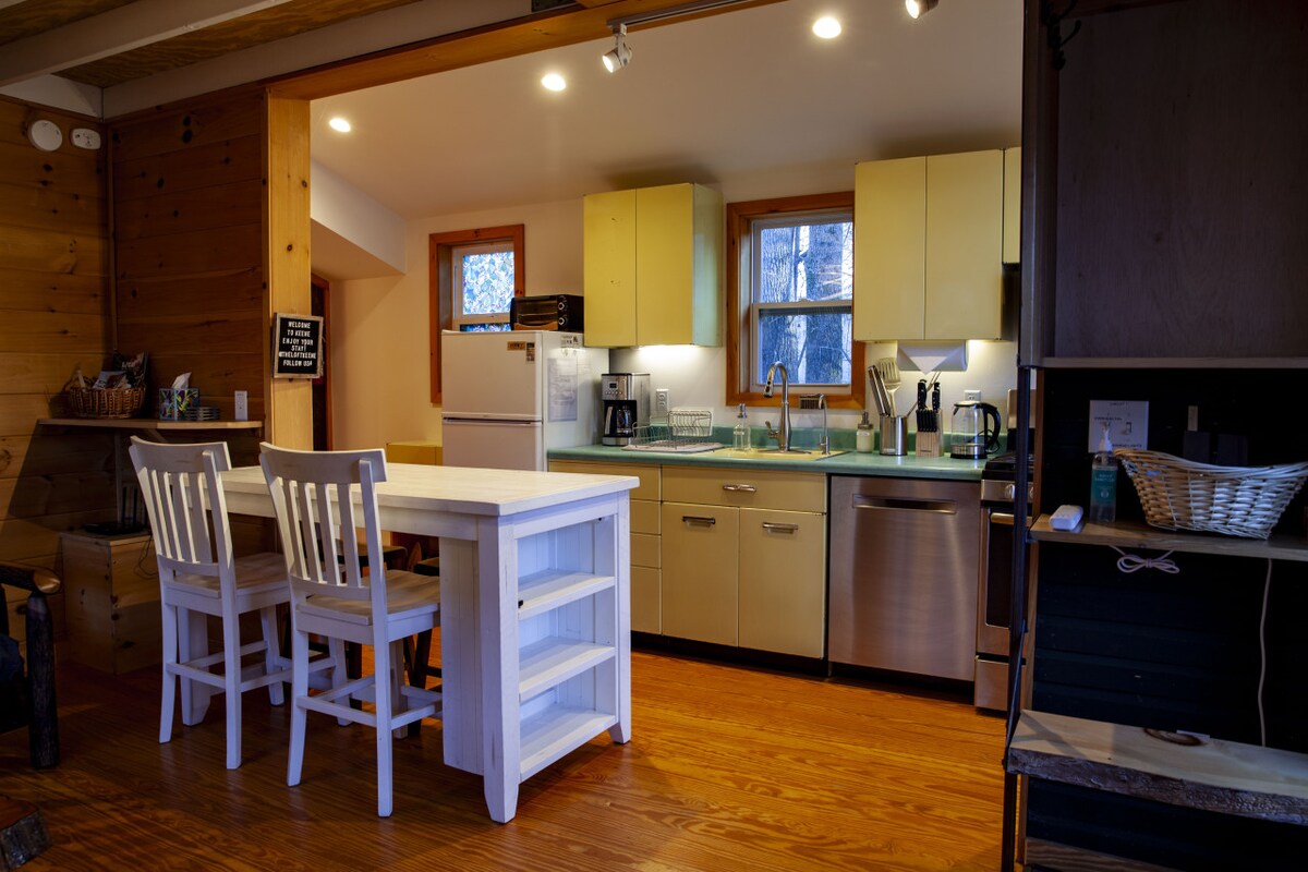 Sunset Cottage is cleaned in compliance with CDC COVID-19 Lodging cleaning standards before you vacation there. Sunset Cottage is only 15 feet from Tupper Lake with a sandy spot for launching canoes/kayaks and a large dock where you can moor your powerboat if you bring one. Dock seating and swimming with a dog friendly stair. Fire pit with firewood on the lawn with Adirondack chairs for your use. Two, kayaks come with the rental. Newly renovated interior with beautiful Adirondack decor.
