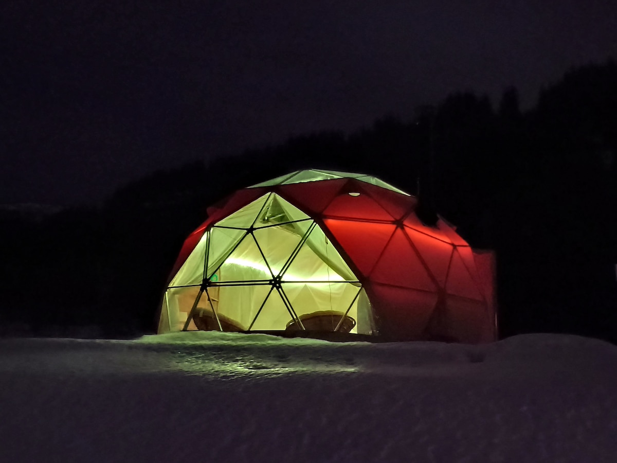 Arctic Dome Valdres is located near by Jotunheimen in Vang in Valdres - 1150 above sea level. A unique place to stay where a little luxury and comfort meets with the nature close by. In this dome there is also a hot-tub you can use! The Dome is in a private mountainarea and has a very spectacular nature and view around it. Everything is in place so that you can have a memorable experience. Welcome to the mountains!